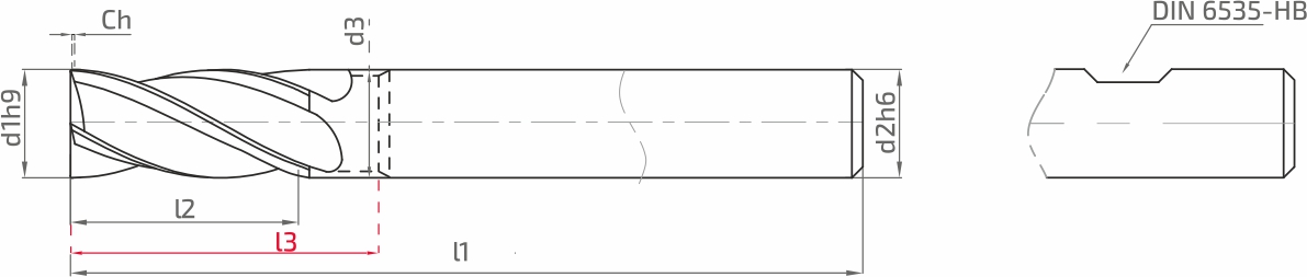 Nerecomandat| Stock | Order No | Code | d1h9 | d2h6 | d3 | l1 | l2 | l3 | Corner | Z | Weldon Order No |